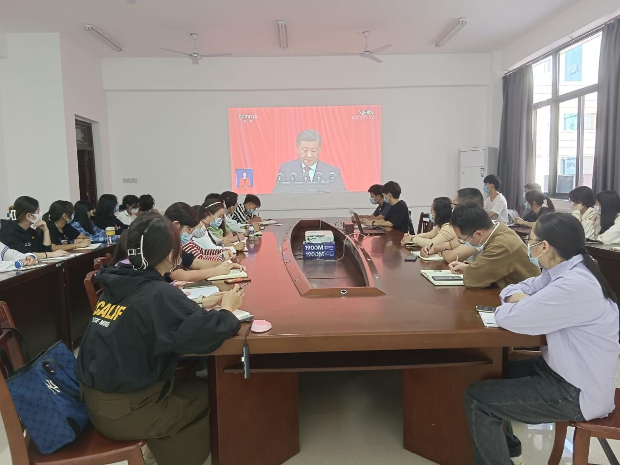 支部纪律委员蒋琳娜老师表示,党的二十大是在全党全国各族人民迈上全面建设社会主义现代化国家新征程、向第二个百年奋斗目标进军的关键时刻召开的一次十分重要的大会。作为一名高校辅导员,我将以习近平总书记重要讲话精神为指导,更好的联系服务青年,强化服务意识、提升服务能力,做广大青年信得过、靠得住、离不开的贴心人,积极引导广大青年学生以学解惑、以学正心、以学明智、以学笃行,投身强国伟业,在青春的赛道上奋力跑出属于最佳成绩。