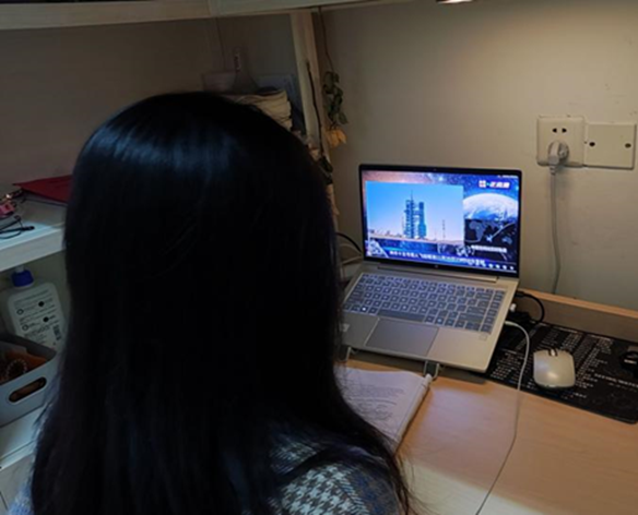 11月29日晚,fun88乐天使团委学生会学生干部自行观看神州十五号载人飞船发射直播。