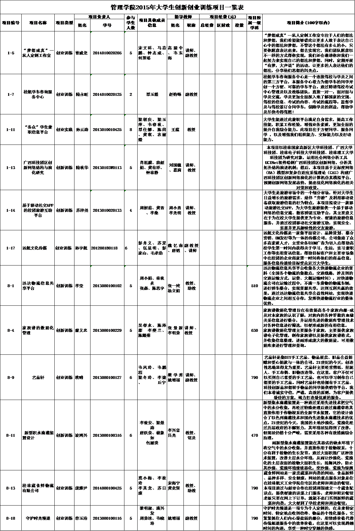 fun88乐天使2015年大学生创新创业训练项目一览表