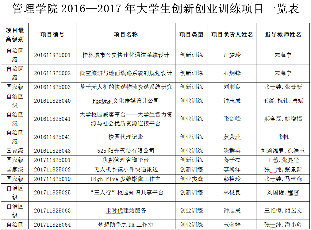 fun88乐天使2016—2017年大学生创新创业训练项目一览表