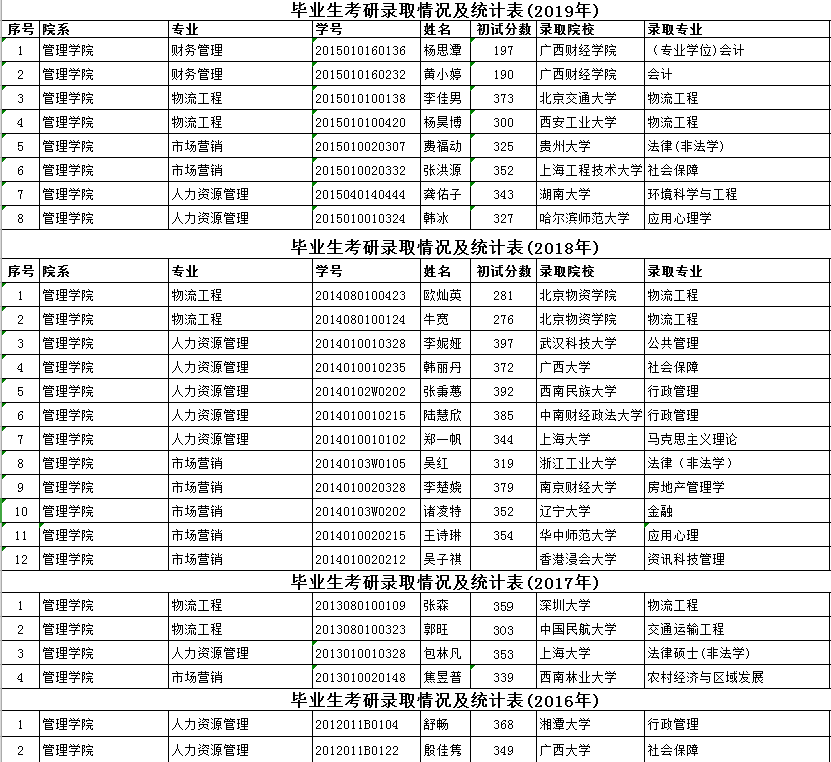 fun88乐天使毕业生考研录取情况及统计表(2016-2019年)