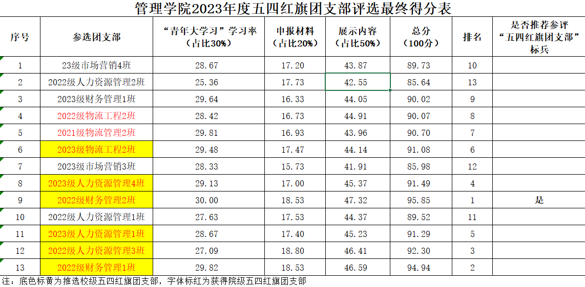 经过严格的评审流程和审慎的考量,本次评选一共有八个团支部获得院级五四红旗团支部,其中六个团支部推选校级五四红旗团支部,22级财务管理2班推荐参评“五四红旗团支部”标兵。