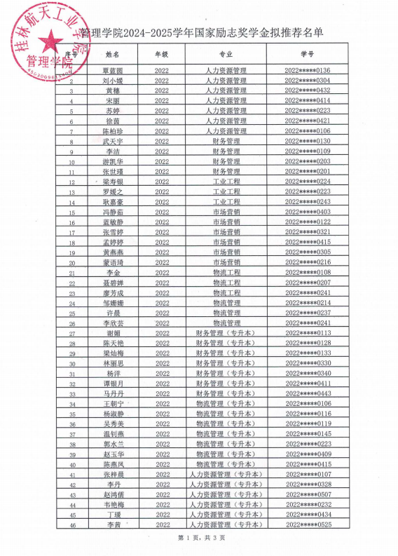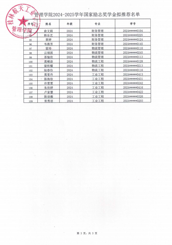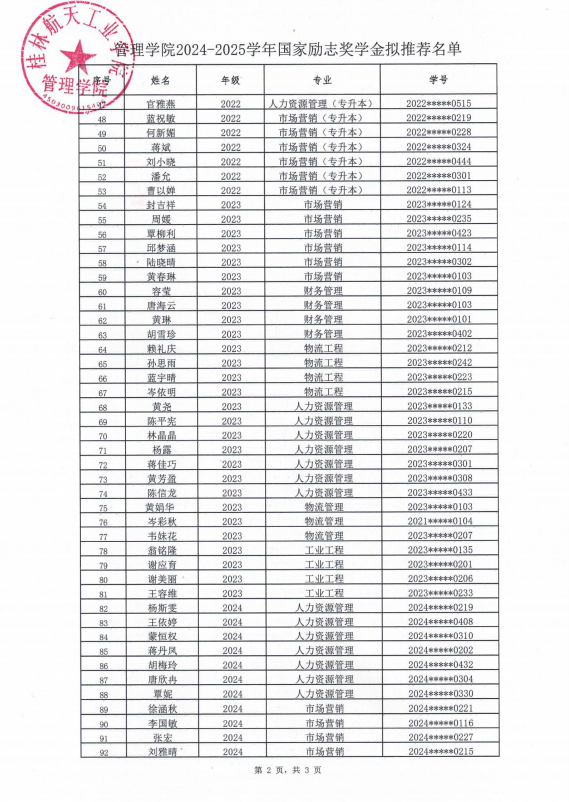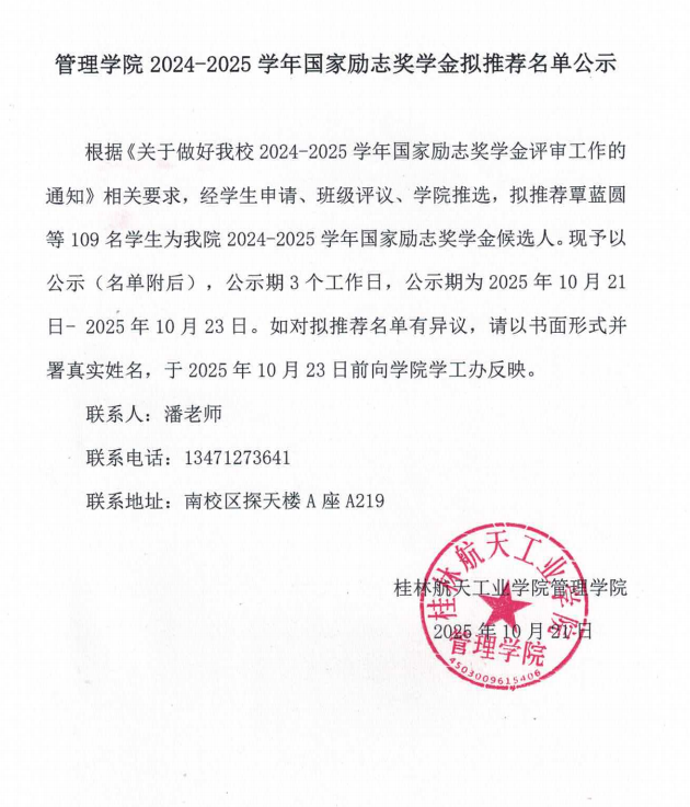 fun88乐天使2024-2025学年国家励志奖学金拟推荐名单公示