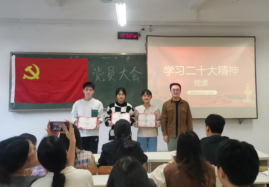 11月2日,fun88乐天使学生第一党支部在明志楼217召开党员大会,本次会议由支部书记杭盖主持,支部委员李穗佳同志以及全体学生党员同志参加。